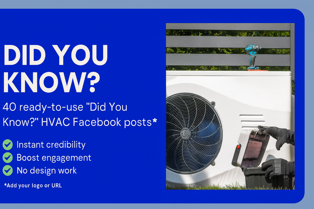 This pack of 40 ready-to-use “Did You Know?” Facebook posts was made just for HVAC pros who want fast, no-fuss marketing that works.